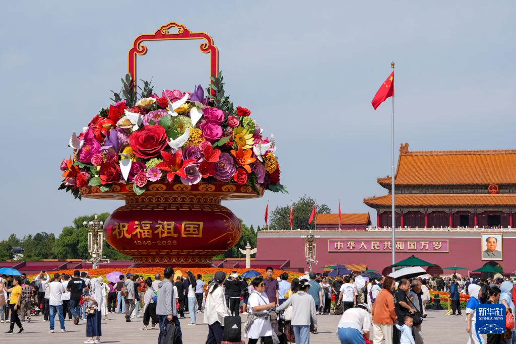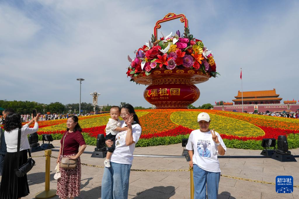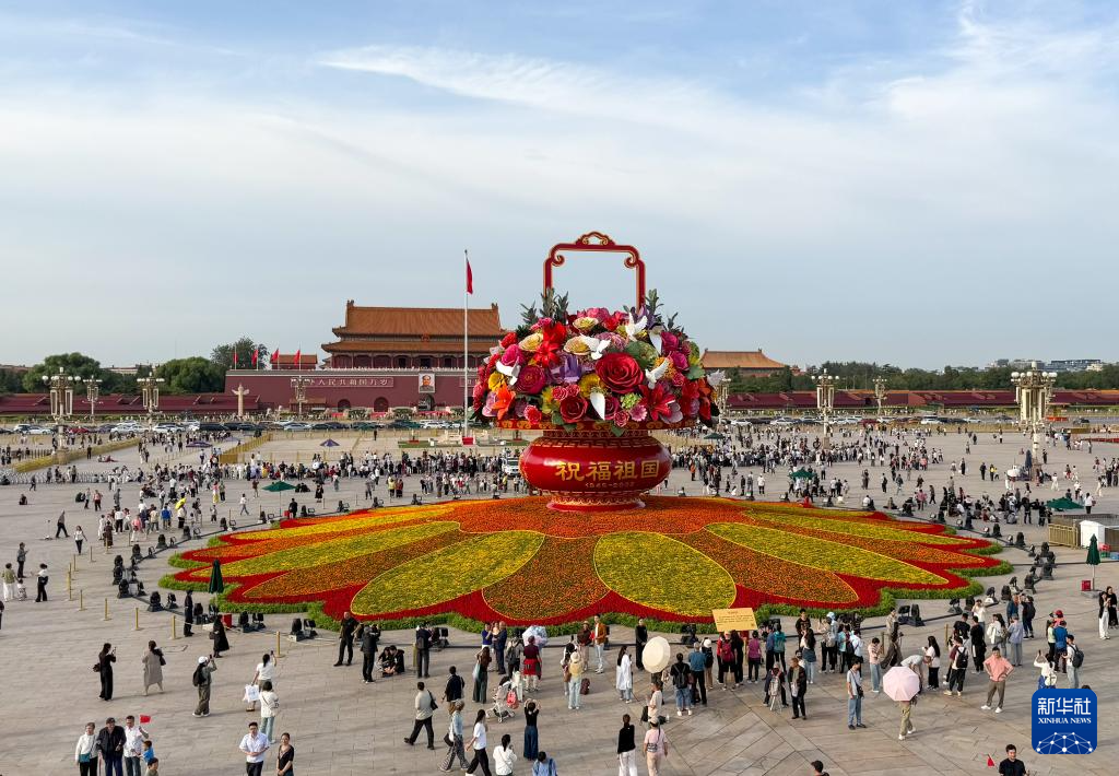 9月25日在天安门广场拍摄的“祝福祖国”大花篮。