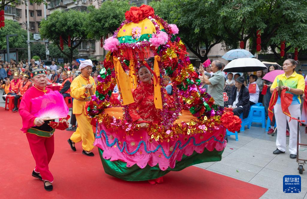 9月26日,社区舞蹈演员在重庆巴南区花溪街道先锋新村小区表演。