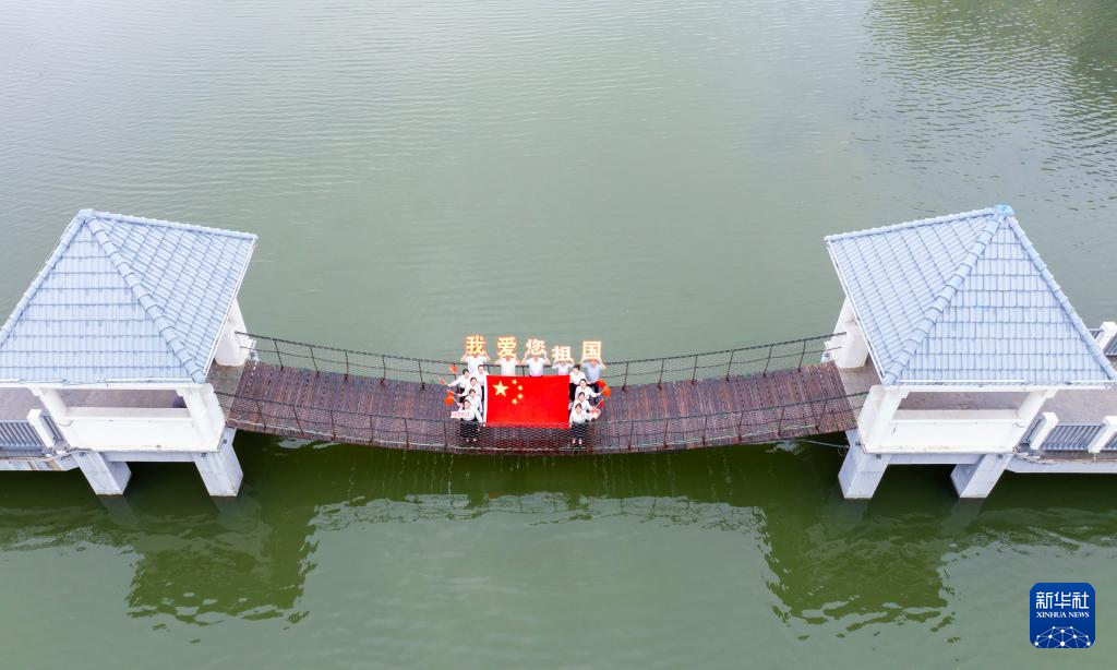 9月26日,江苏省兴化市自然资源和规划局工作人员参加“我和国旗合个影”主题活动(无人机照片)。