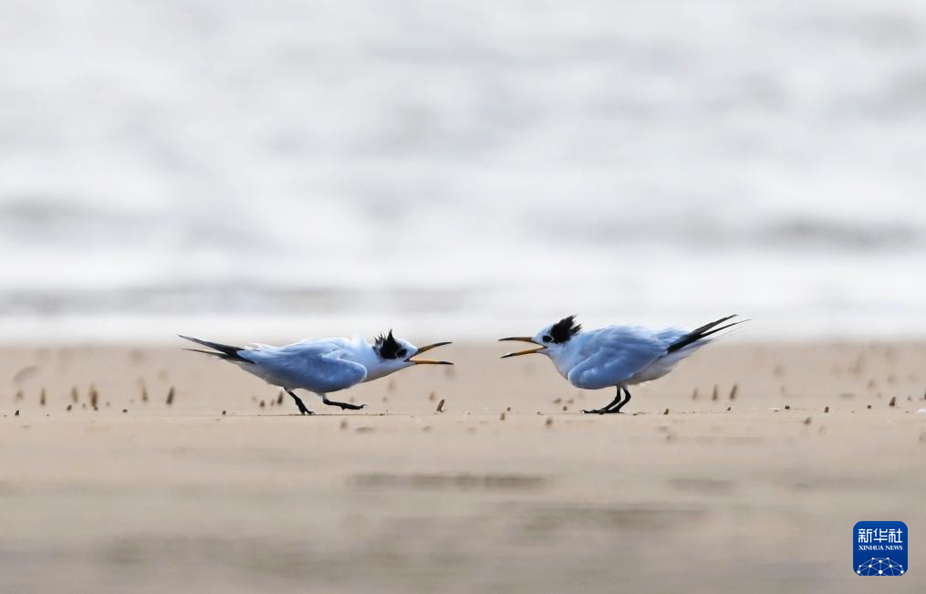 近日,在山东省日照市刘家湾赶海园,被誉为“神话之鸟”的国家一级保护动物中华凤头燕鸥在滩涂上嬉戏、觅食、栖息,尽显自然生机与生态之美。