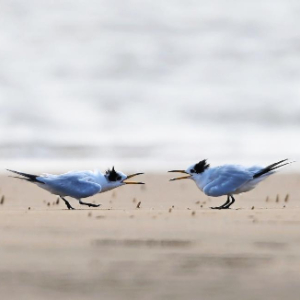9月25日,两只中华凤头燕鸥在日照市刘家湾赶海园滩涂上嬉戏。
