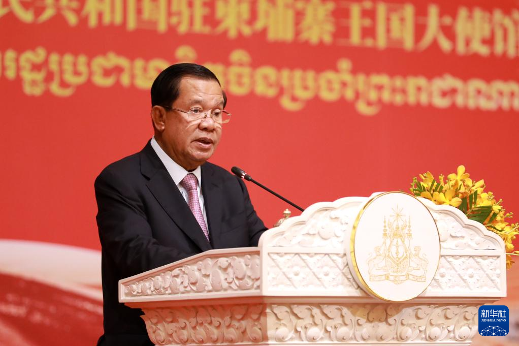 9月26日,柬埔寨参议院主席、代理国家元首洪森在金边出席中国驻柬使馆举行的庆祝中华人民共和国成立76周年招待会并发言。