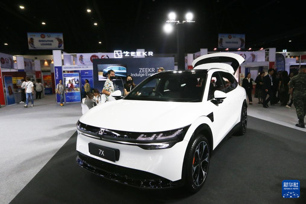 9月26日,在泰国曼谷,人们在2025泰中合作博览会上参观中国新能源汽车展台。