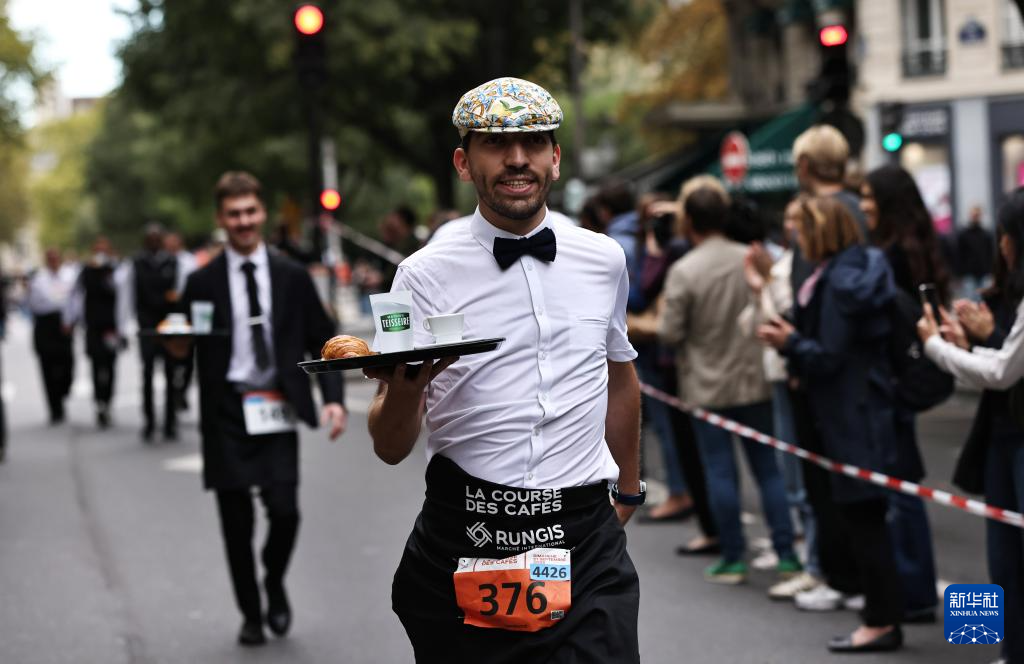 当日,法国首都巴黎举行具有百年历史的服务员赛跑活动。数百名穿着制服的男女服务员手托餐盘,餐盘内放着羊角面包、一个空咖啡杯和一杯水,从巴黎市政厅出发,沿环线跑完4公里的赛程。巴黎服务员赛跑最早始于1914年。今年还增加了普通民众赛跑环节。
