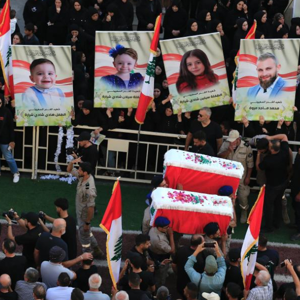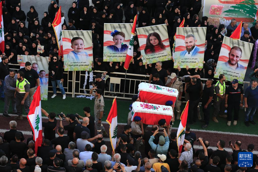 9月23日,人们在黎巴嫩南部城市宾特朱拜勒出席以色列空袭遇难者的葬礼。