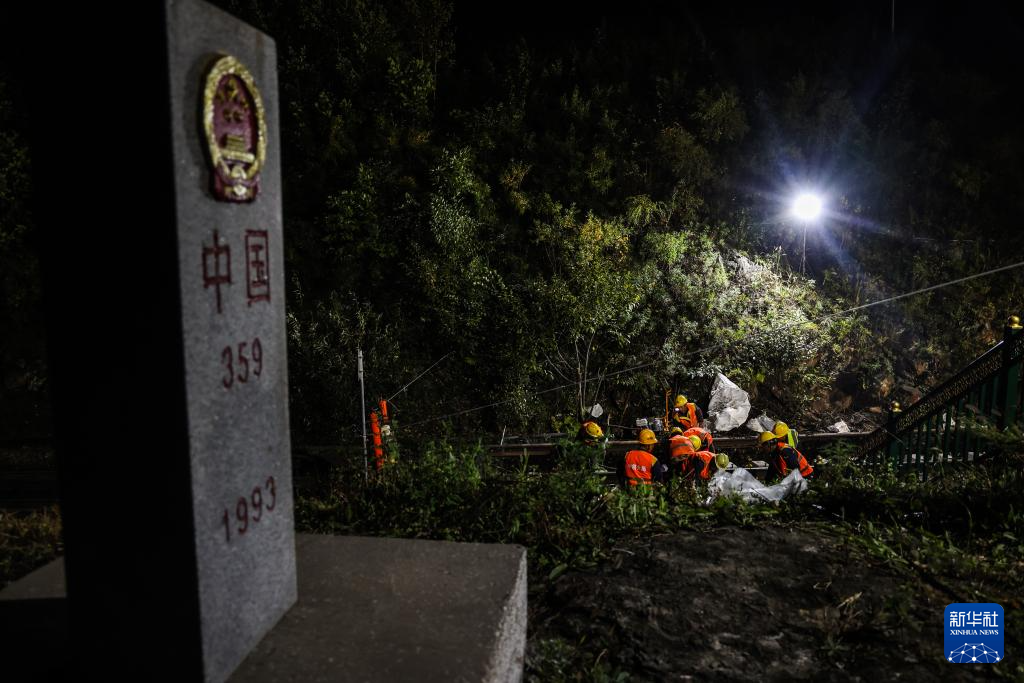 9月26日,施工人员在国境线附近连接新线钢轨。