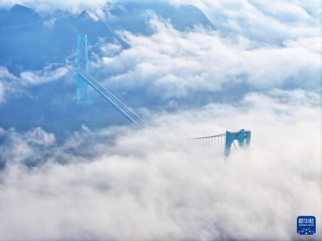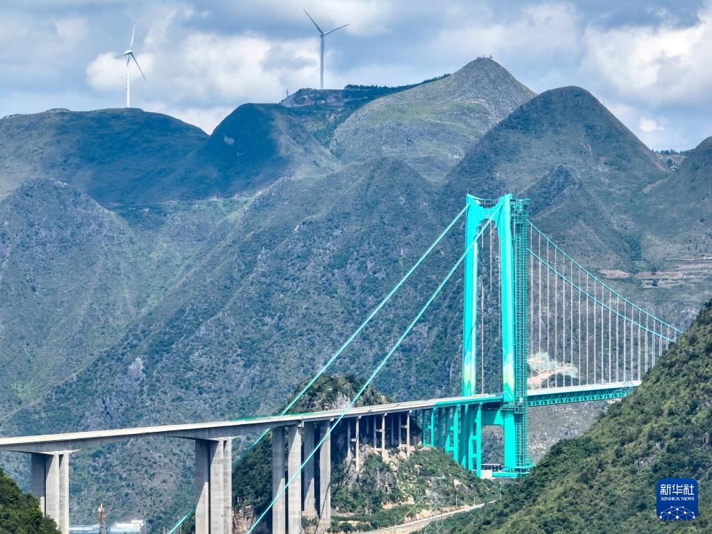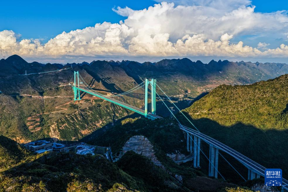 9月28日拍摄的贵州花江峡谷大桥(无人机照片)。