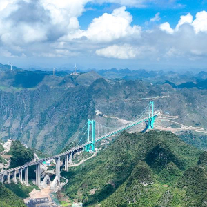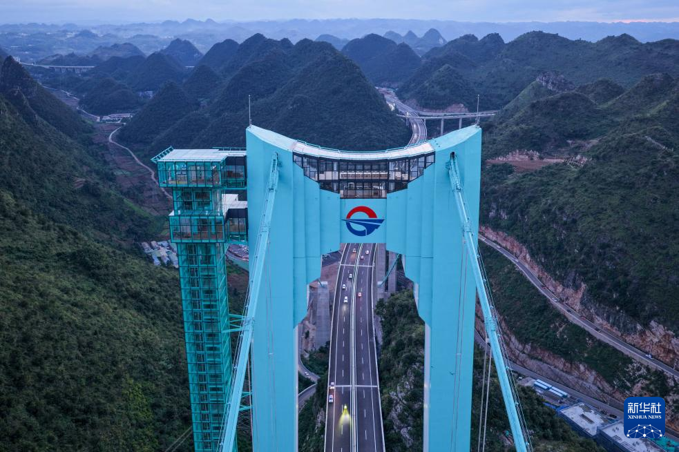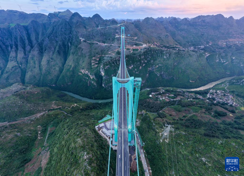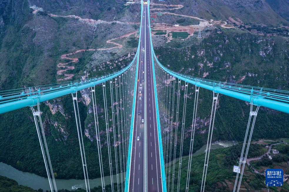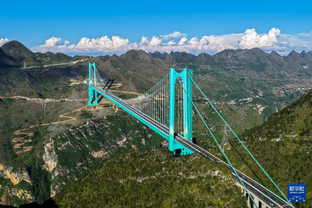 9月28日,世界第一高桥——贵州花江峡谷大桥建成通车。花江峡谷大桥是贵州六枝至安龙高速公路的控制性工程,大桥全长2890米,主跨径1420米,是目前世界山区峡谷第一大跨度钢桁梁悬索桥;其桥面距水面垂直高度625米,是新的世界第一高桥。