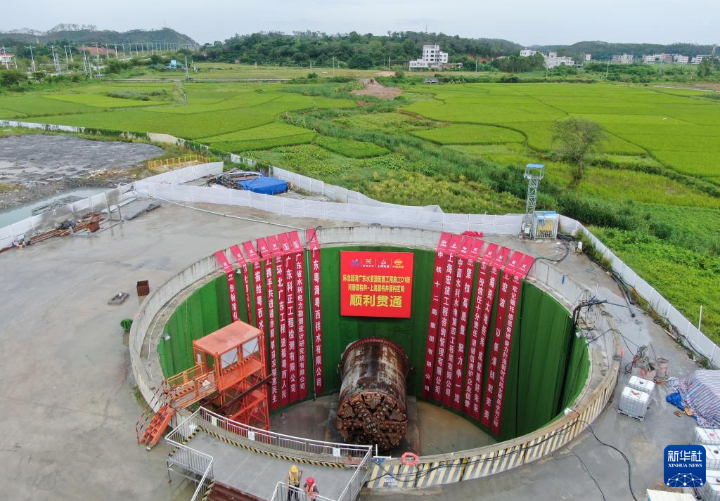 9月28日在广东廉江的施工现场拍摄的“粤海环北8号”盾构机顺利贯通环北部湾广东水资源配置工程首个盾构区间。
