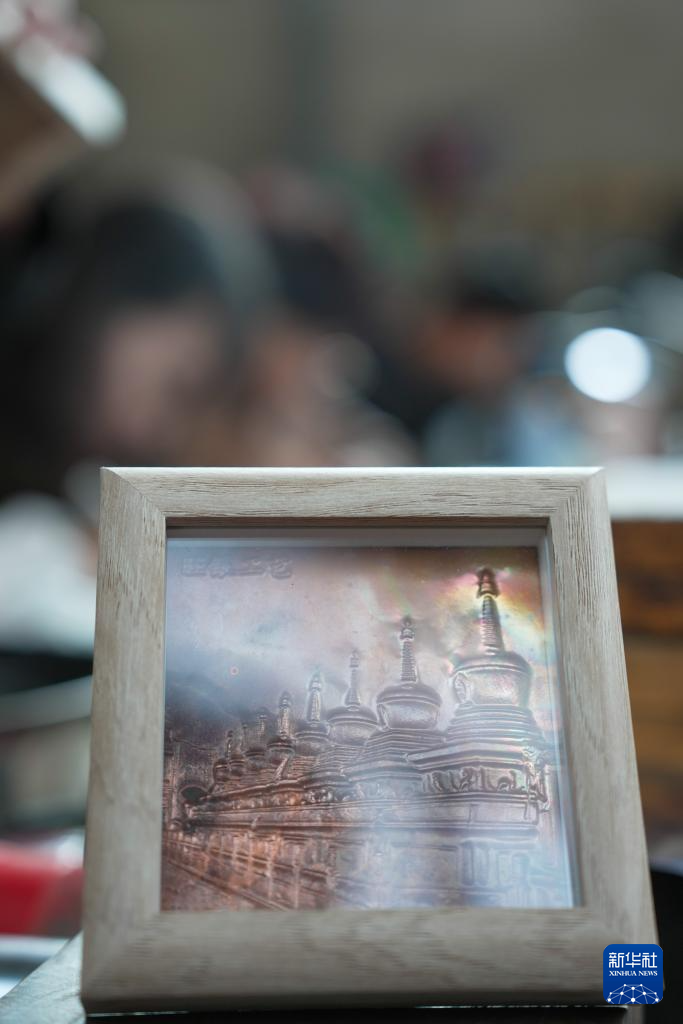 9月28日在青海省西宁市湟中区鲁沙尔镇阳坡村民族手工艺加工基地拍摄的铜摆件。