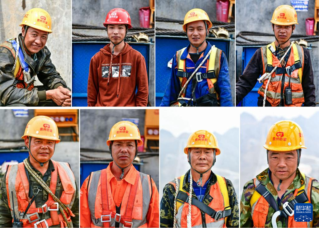 2024年3月27日在贵州花江峡谷大桥施工现场拍摄的建设工人群像(拼版照片)。