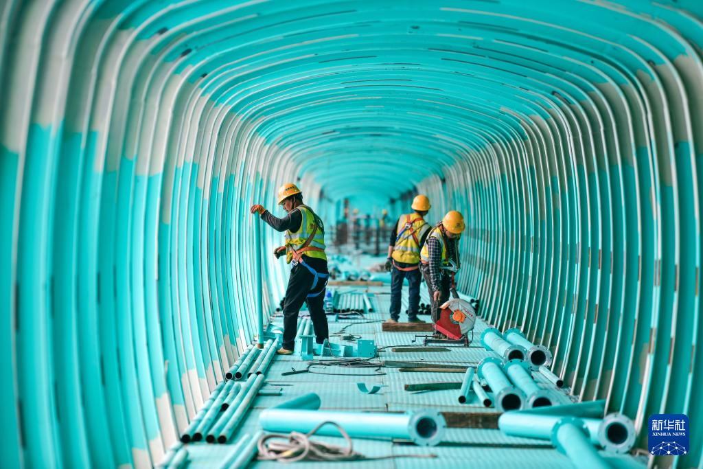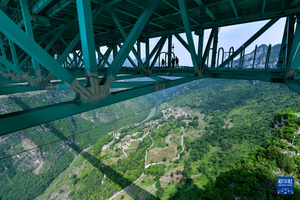 2025年6月11日,工人在贵州花江峡谷大桥上安装观景长廊。