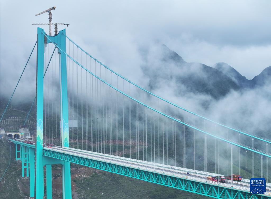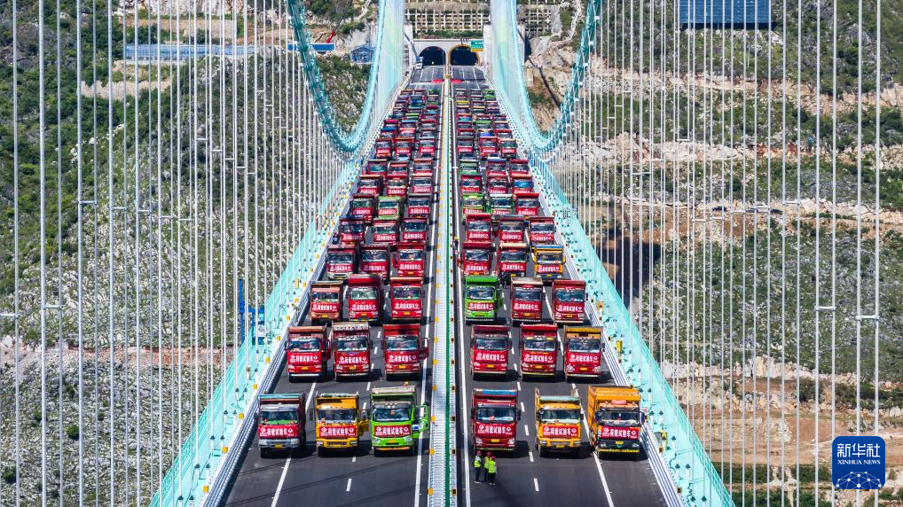 2025年8月25日拍摄的贵州花江峡谷大桥荷载试验现场(无人机照片)。