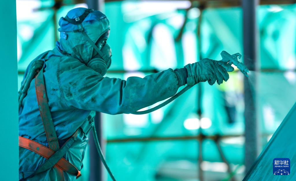 2025年6月11日,工人在贵州花江峡谷大桥上给桥体喷漆。