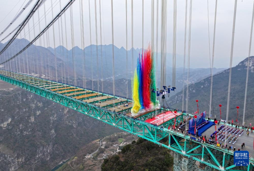2025年1月17日,贵州花江峡谷大桥成功合龙(无人机照片)。