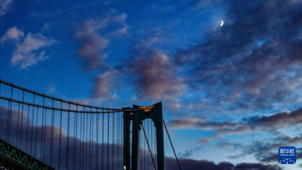 9月27日拍摄的月色下的贵州花江峡谷大桥(无人机照片)。