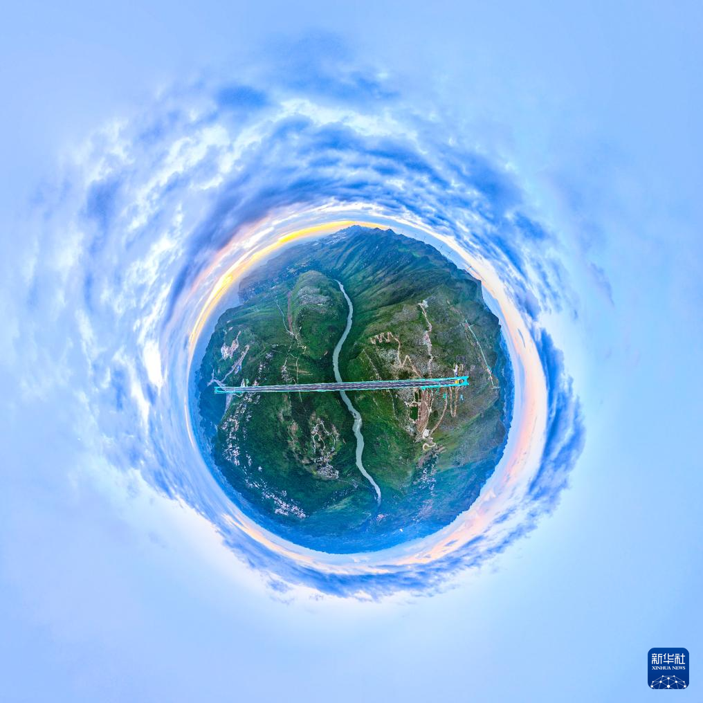 9月27日拍摄的贵州花江峡谷大桥(无人机全景照片)。