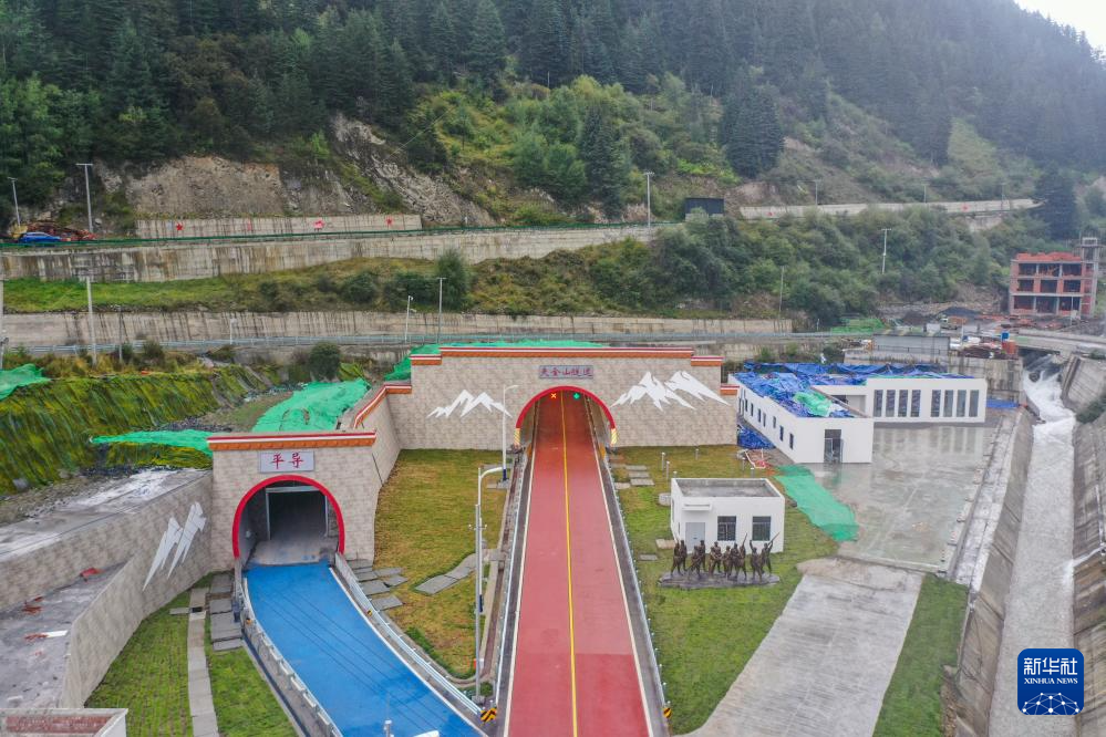 这是9月28日在四川省小金县拍摄的夹金山隧道出口(无人机照片)。