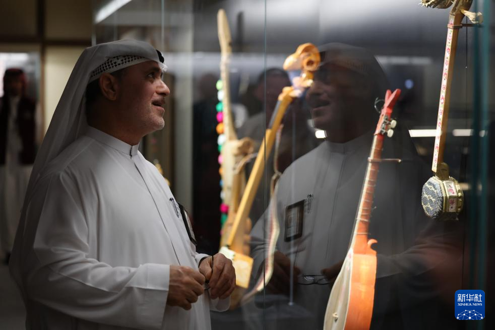 9月28日,在沙特阿拉伯首都利雅得,观众参观“天地同和——中国古代乐器展”。