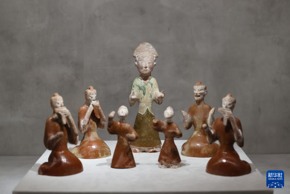 这是9月28日在沙特阿拉伯首都利雅得“天地同和——中国古代乐器展”上拍摄的中国古代音乐主题人物塑像。