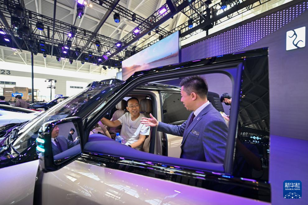 9月30日,在国家会展中心(天津),消费者在仰望汽车展台咨询了解一款具有智能驾驶功能的汽车。