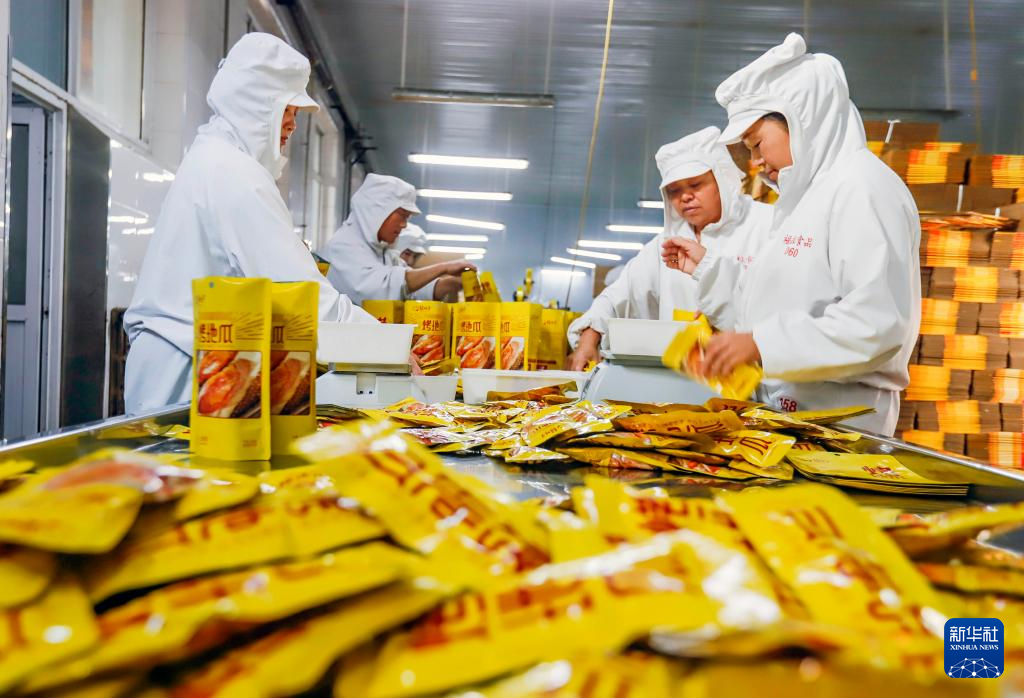 10月1日,工人在河北省遵化市苏家洼镇一家食品加工企业包装车间工作。