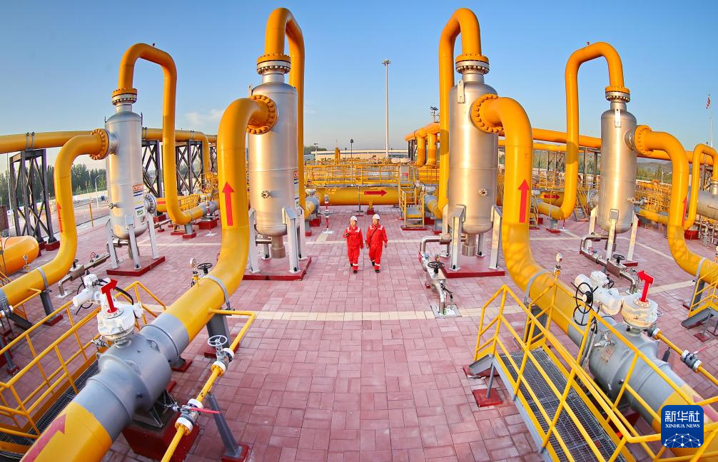10月1日,在河北省秦皇岛市海港区的国家管网北方管道秦皇岛作业区,技术人员在对“北气南下”能源大通道线路设备进行日常巡检。