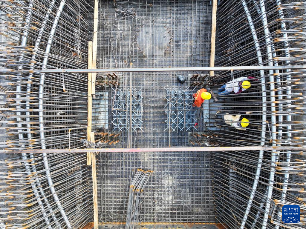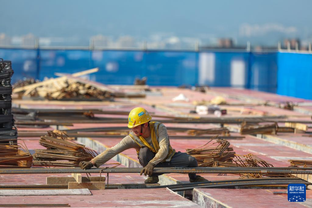 10月1日,在重庆市两江新区,中建八局的施工人员在两江新区礼嘉创新中心项目进行绑钢筋作业。