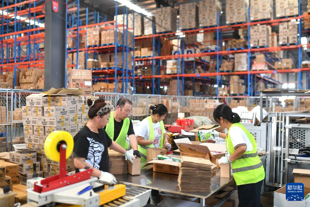 10月1日,山东省青岛市城阳区夏庄街道青岛鲜美鲜到供应链管理有限公司仓库拣货员在拣选货物。