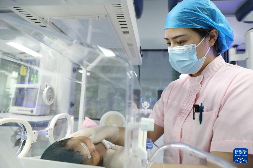 10月1日,河南省焦作市温县妇幼保健院护士在给新生儿做护理。