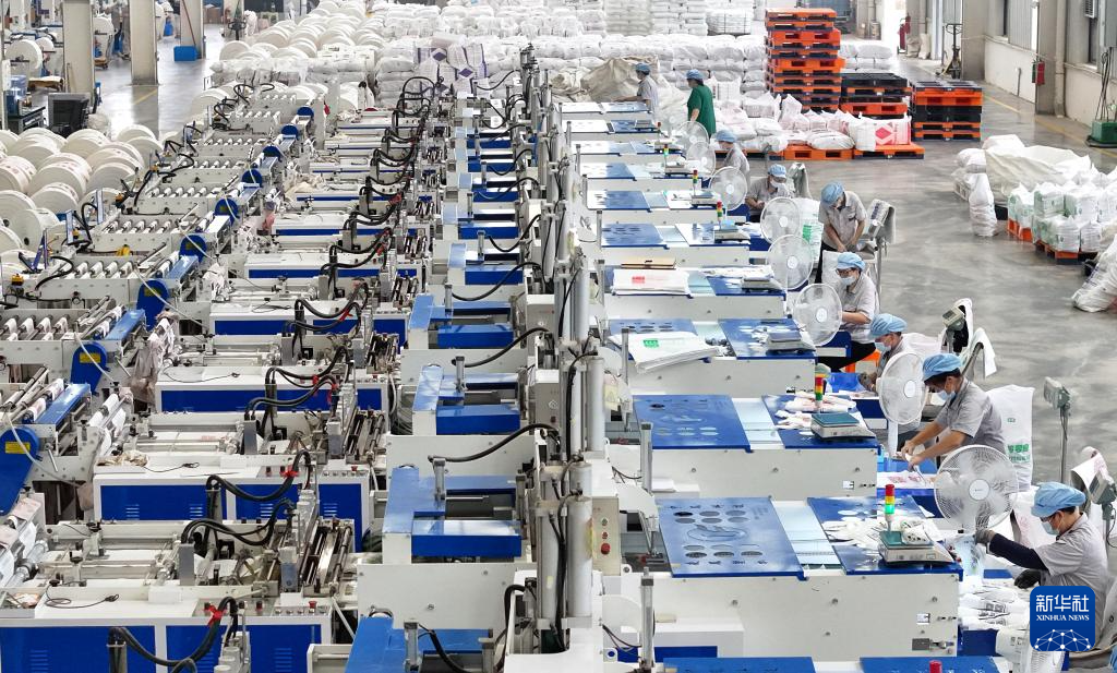 10月1日,工人在河北省遵化市高强化纤有限公司车间工作。
