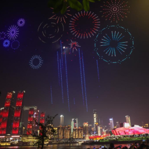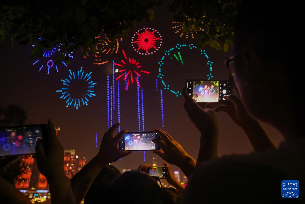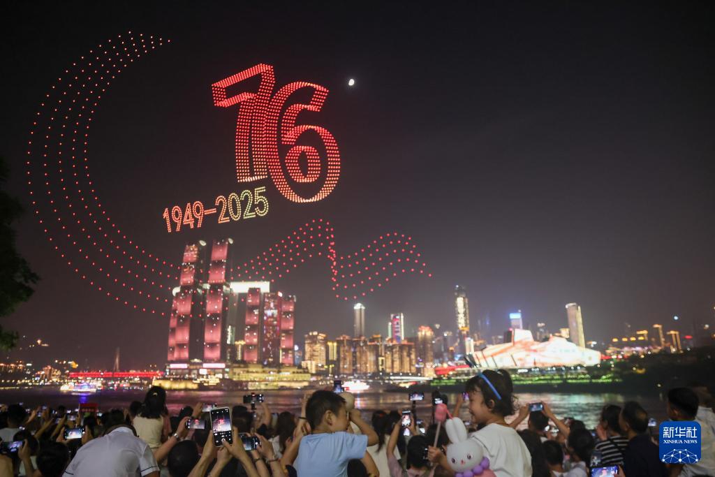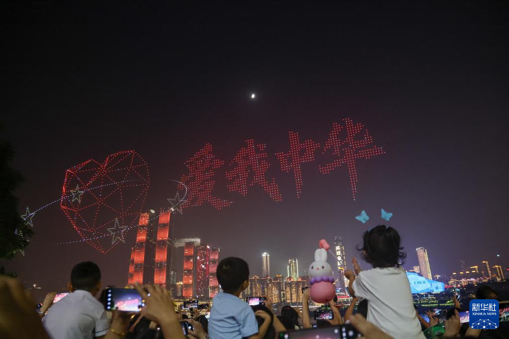 10月1日晚,一场以“家国共庆”为主题的无人机灯光秀在重庆上演。5000架无人机飞上天空,在光影变幻中,为观众献上视觉盛宴。