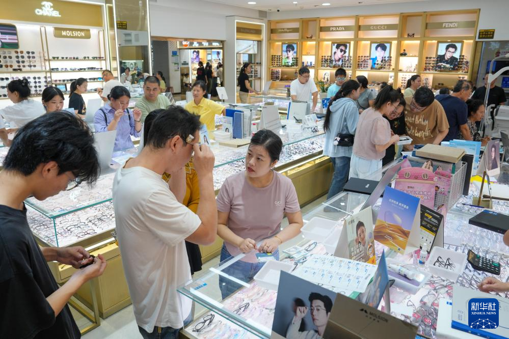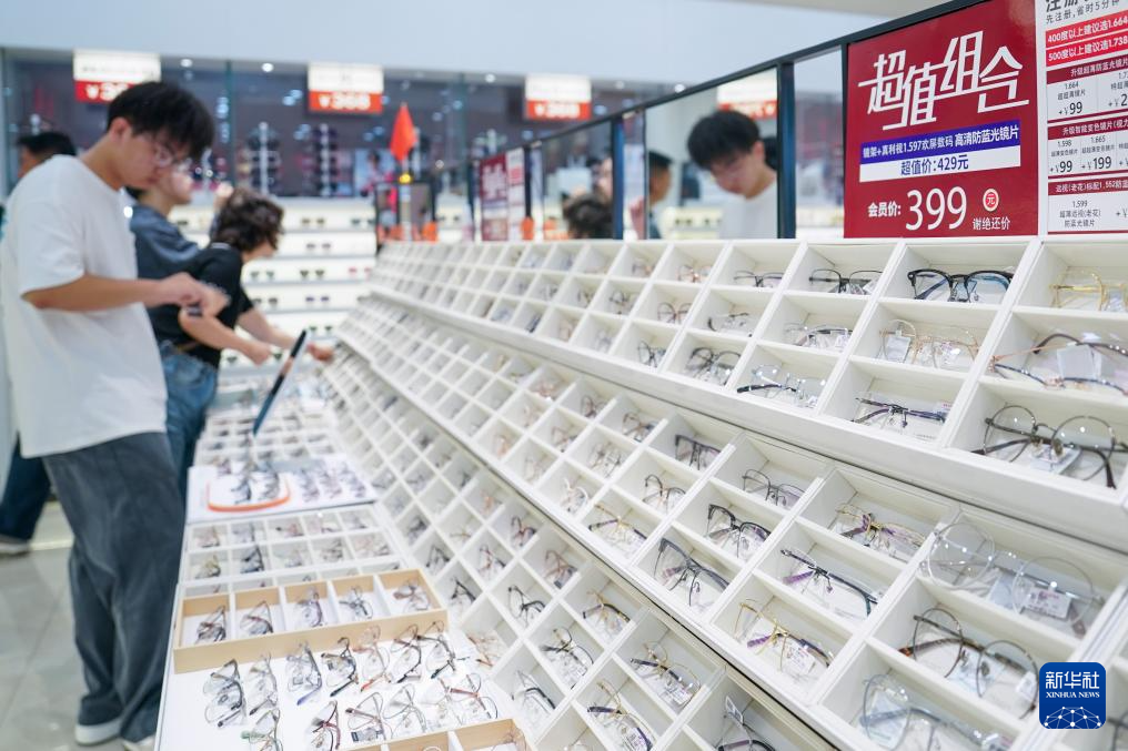 人们在中国丹阳国际眼镜城内选购眼镜(10月2日摄)。