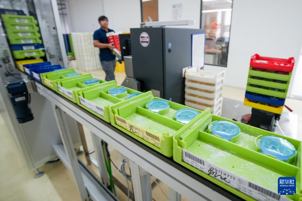 这是江苏洪旭德生科技有限公司生产车间内的自由曲面数字镜片加工生产线(9月27日摄)。