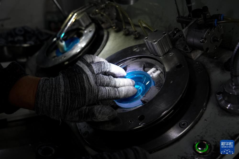在位于丹阳的江苏斌晴光学眼镜有限公司生产车间,工作人员在加工镜片(9月25日摄)。