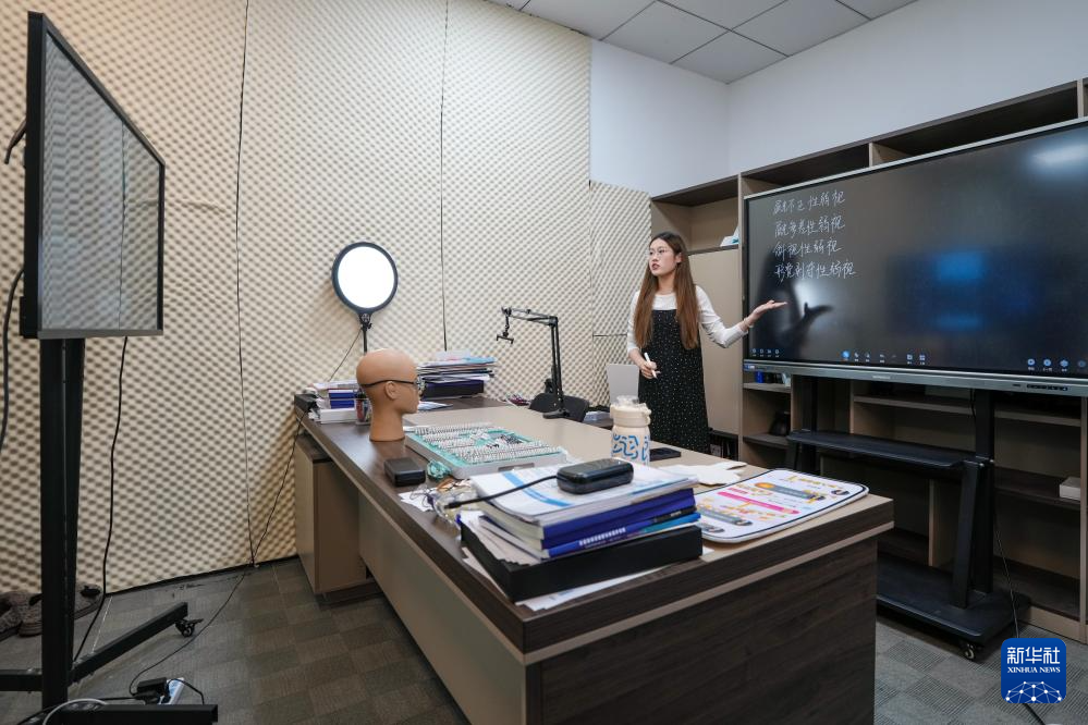 一名主播在位于丹阳的禾目眼视光教育集团进行教学直播(9月27日摄)。