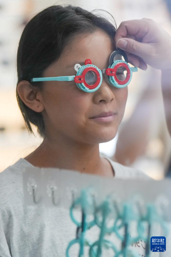 小朋友在中国丹阳国际眼镜城内验光配镜(10月2日摄)。