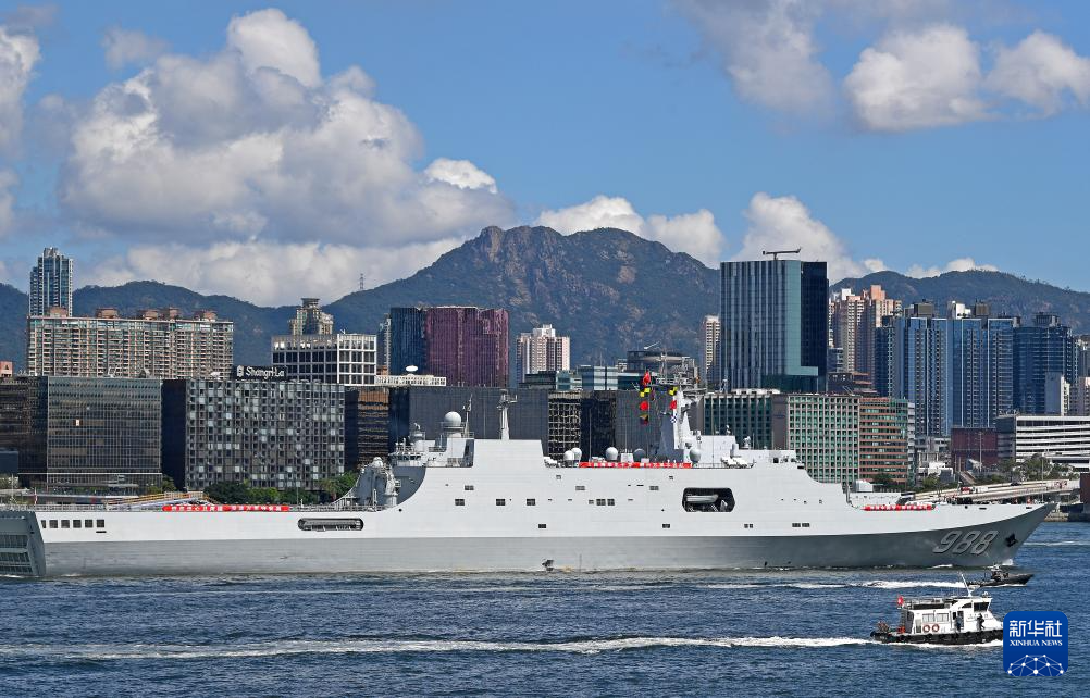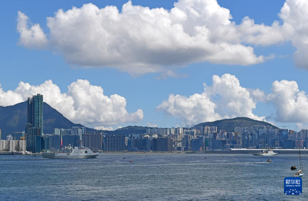 10月3日,中国海军沂蒙山舰从香港维多利亚港驶过。