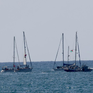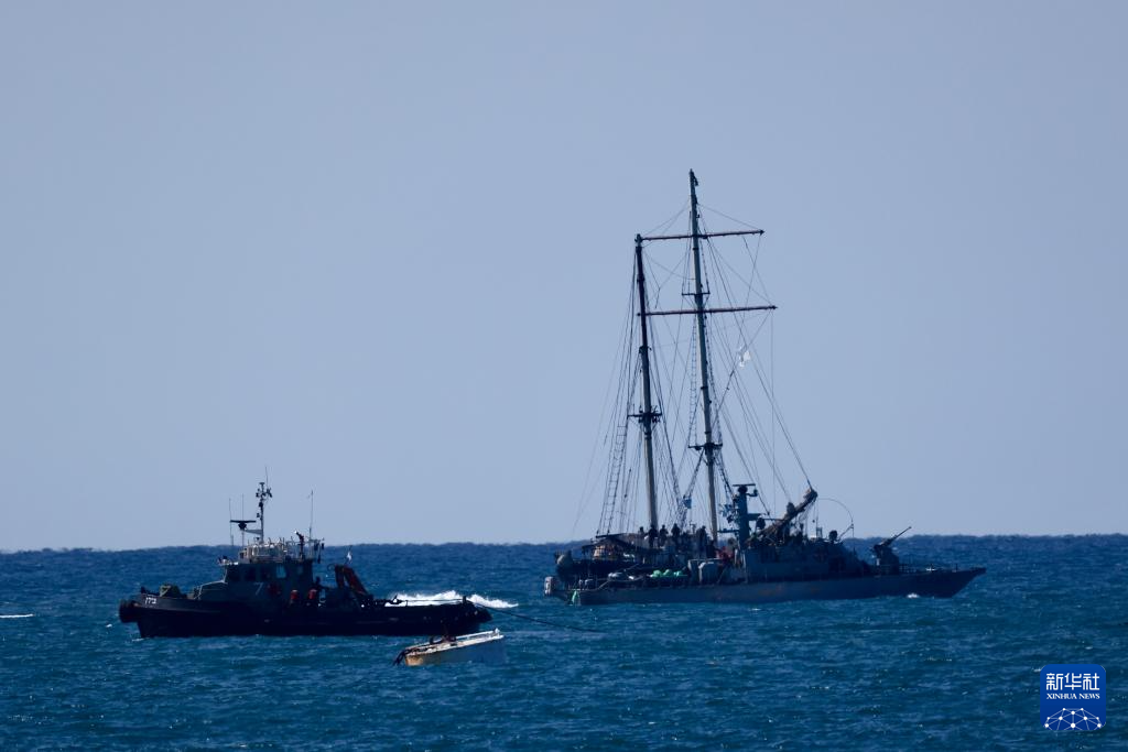 10月2日,在以色列南部阿什杜德港附近,“全球坚韧船队”船只被拖向港口。