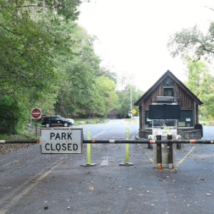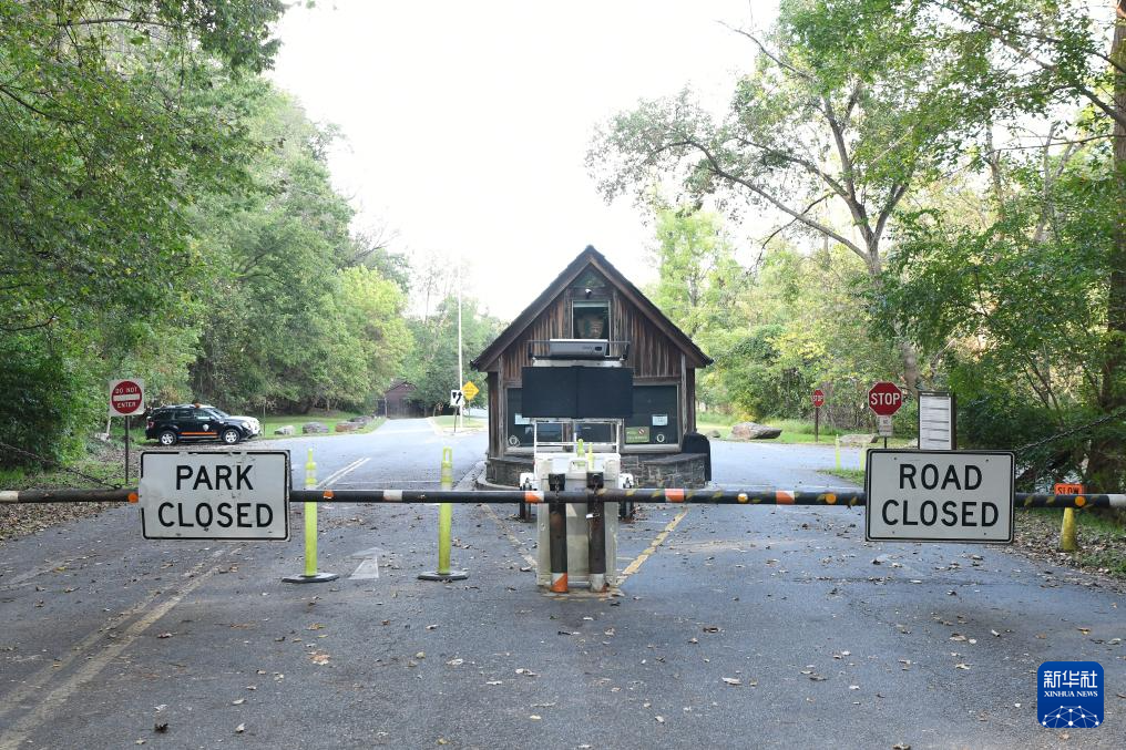 10月3日,在美国弗吉尼亚州费尔法克斯,受联邦政府“停摆”影响,通往大瀑布公园游客中心的道路关闭。