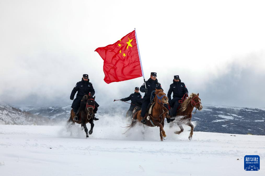 国庆中秋假期,各行各业的劳动者坚守在工作一线,在平凡的岗位上尽责奉献。这是10月2日,新疆阿勒泰边境管理支队喀纳斯边境派出所巡护队对山口要道进行巡逻踏查。