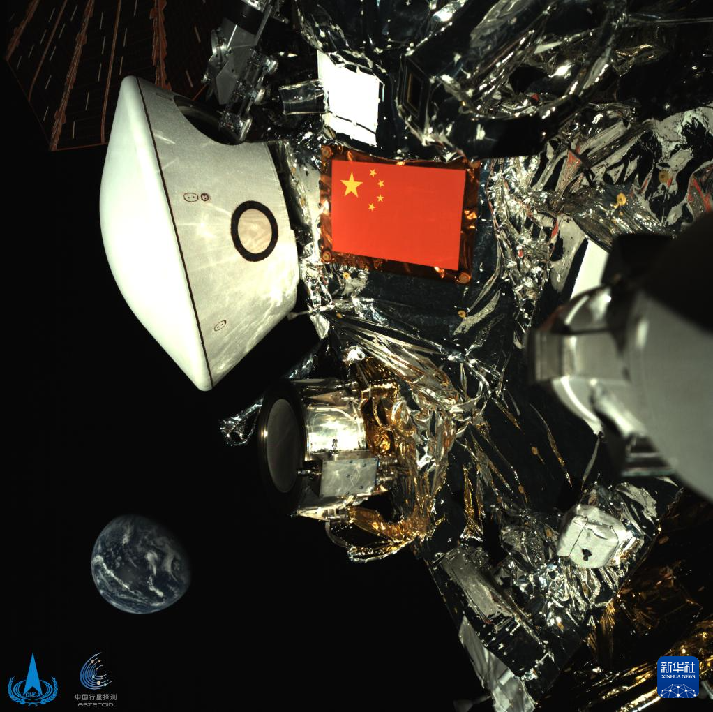 10月1日,国家航天局发布行星探测工程天问二号任务探测器在轨飞行期间获取的探测器与地球合影图像。