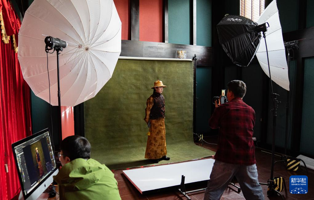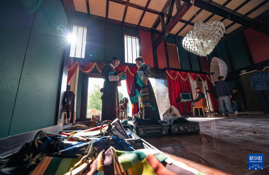 班珠丹塔身着藏装进行棚拍(9月9日摄)。