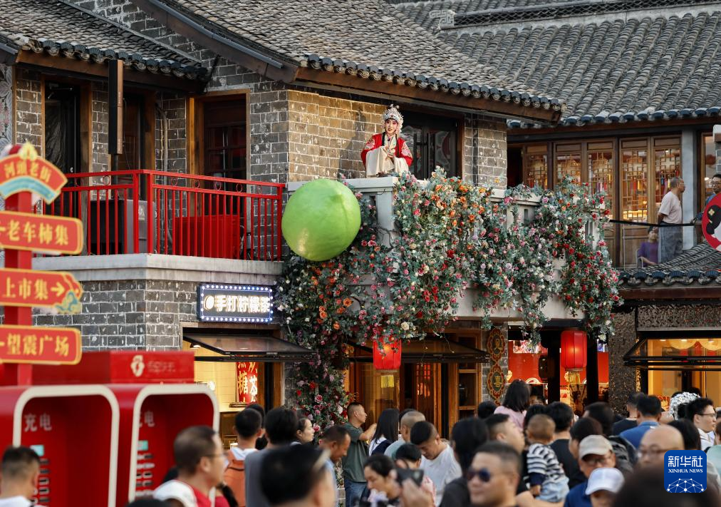 10月3日,演员在河北省唐山市丰南区河头老街景区为游客表演节目。