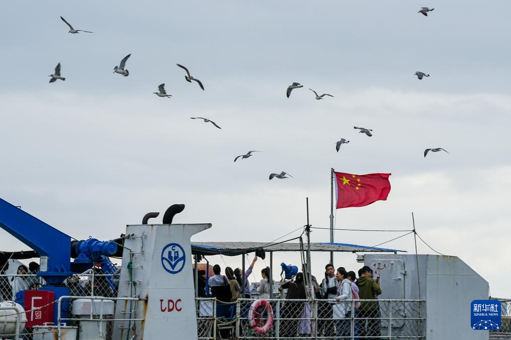 10月3日,游客乘坐船只前往山东省烟台市庙岛。