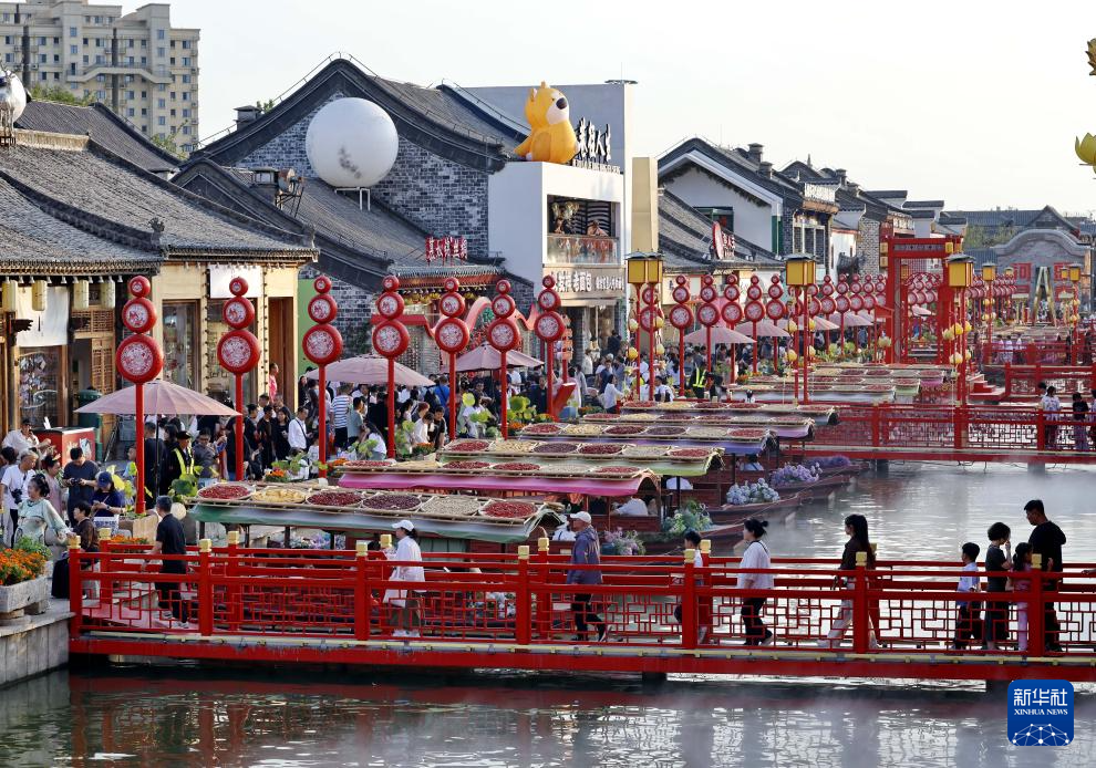 10月3日,游客在河北省唐山市丰南区河头老街景区游玩。