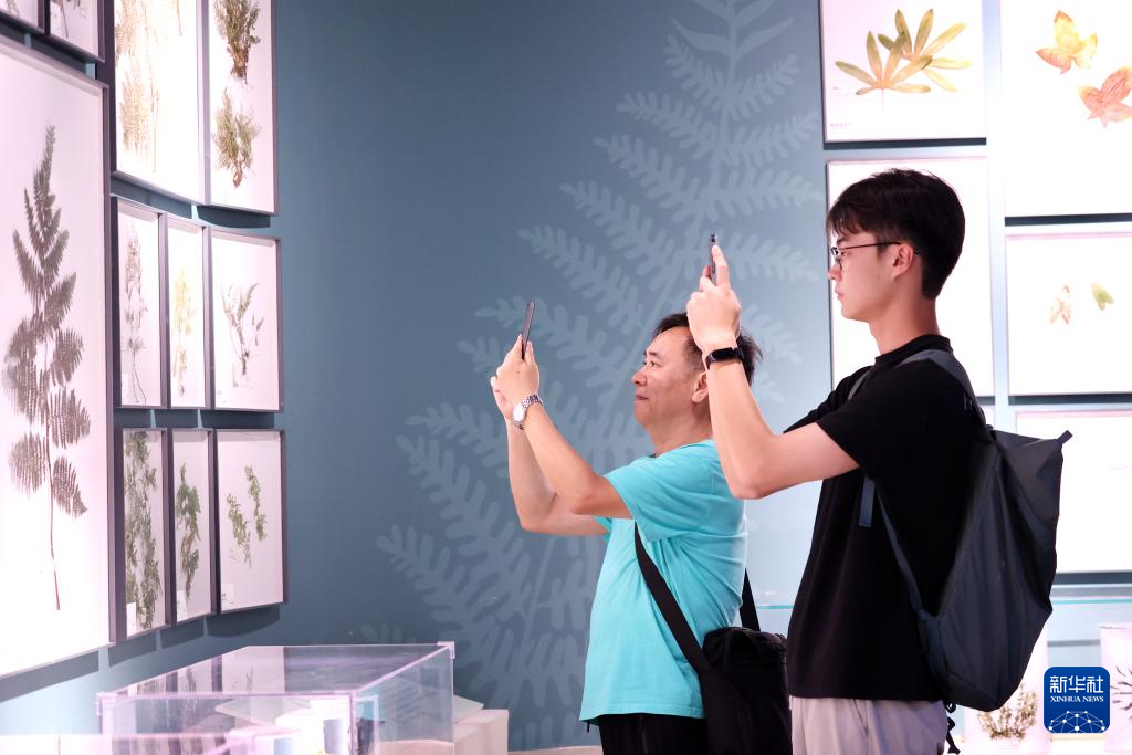 10月4日,游客在浙江自然博物院参观拍照。