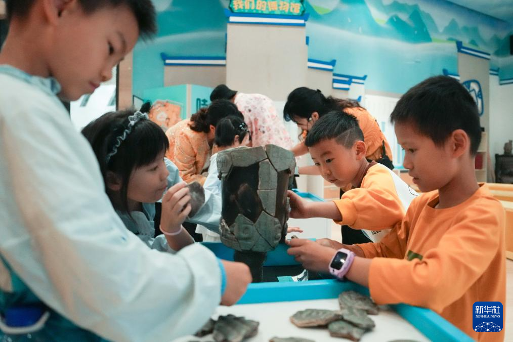 10月4日,小朋友在长沙博物馆体验“文物修复”。