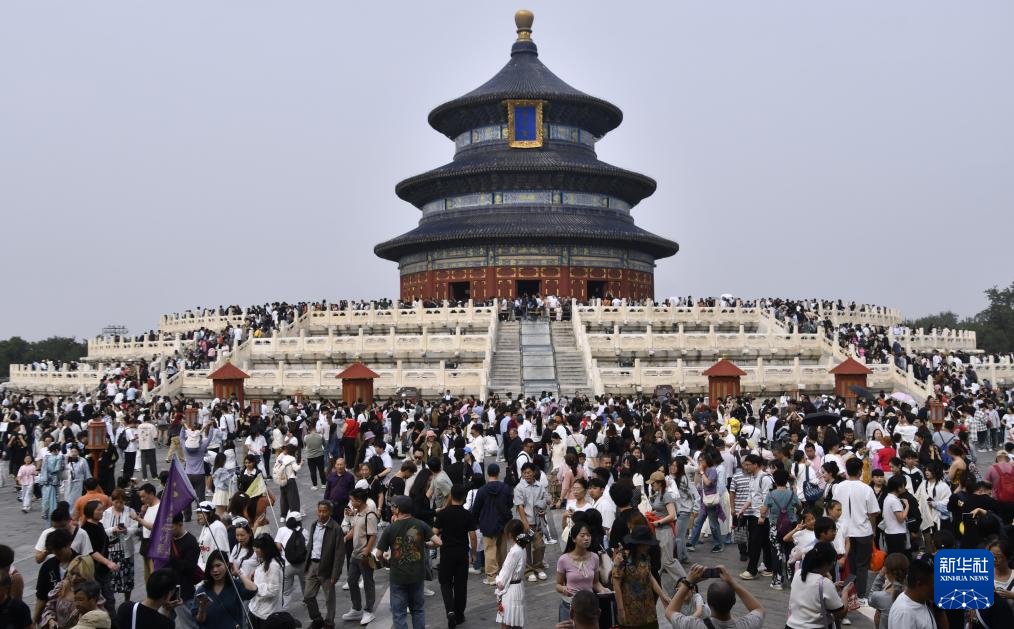 10月4日,游人在北京天坛公园游览。