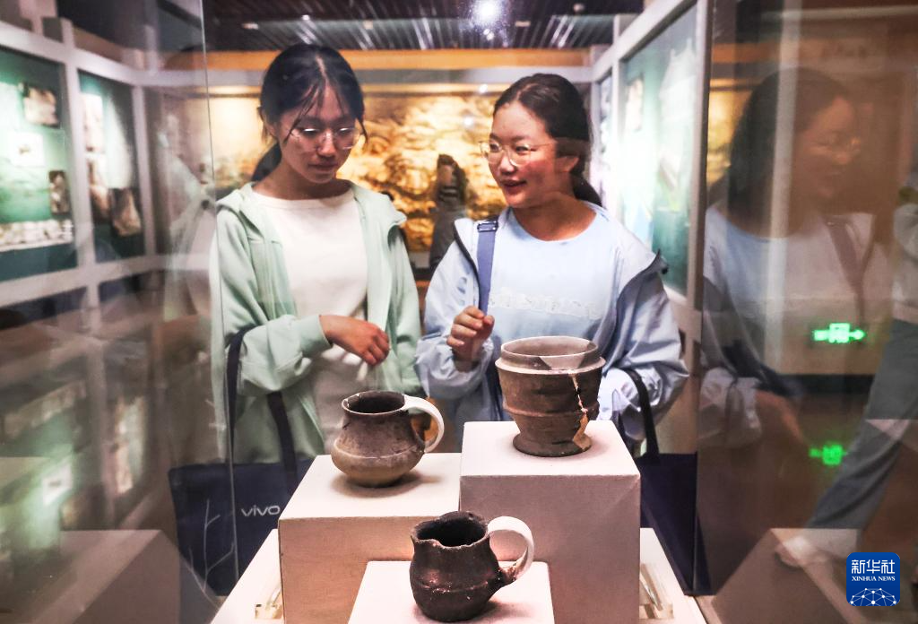 10月4日,游客在江苏连云港市博物馆参观。